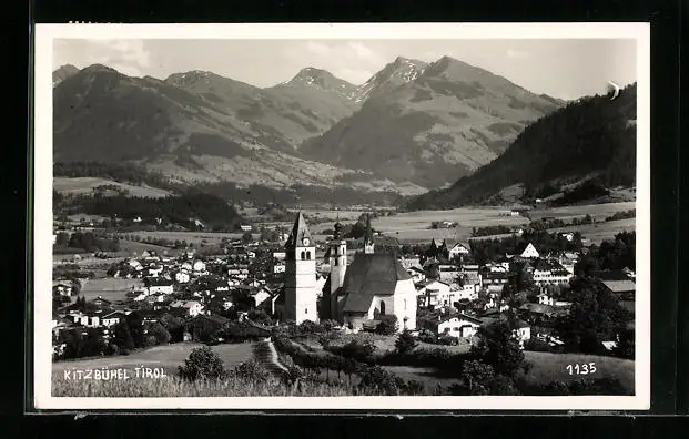 AK Kitzbühel, Ortsansicht mit Gebirgskette
