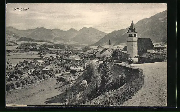 AK Kitzbühel, Ortsansicht mit Kirche