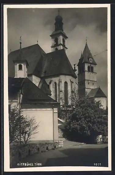 AK Kitzbühel /Tirol, Ortspartie an der Kirche
