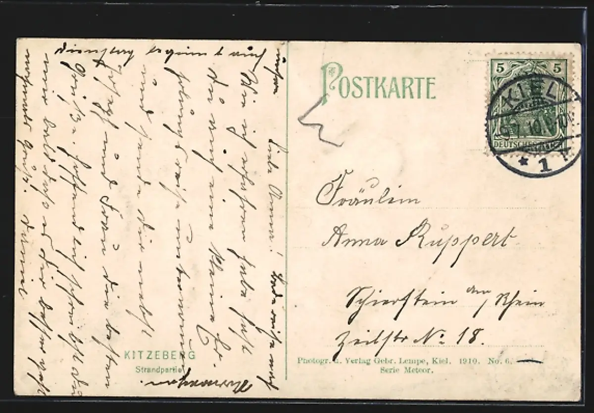 gelaufen 1910, Eckknicke li. oben u. re. unten, guter Zustand