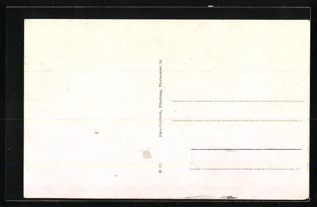 Personenbezogene Daten auf der Rückseite der Karte wurden durch blauen Textmarker unkenntlich gemacht. Die blauen Stellen sind auf die Vorderseite durchgeweicht und wirken sich negativ auf das Postkartenfoto aus