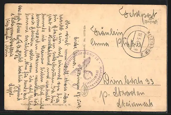 gelaufen 1942, Eckknicke re. unten u. li., guter Zustand