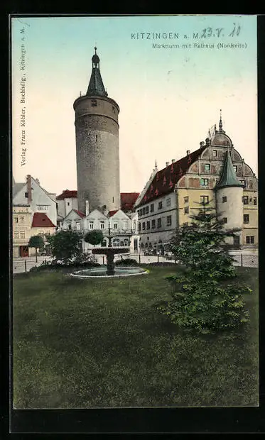 AK Kitzingen a. M., Marktturm mit Rathaus