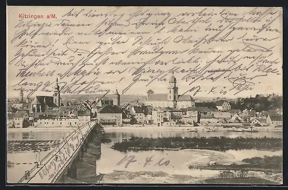 AK Kitzingen a. M., Ortsansicht über den Fluss