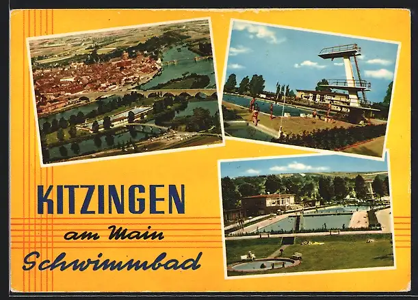 AK Kitzingen a. M., Schwimmbad, Ortsansicht aus der Vogelschau