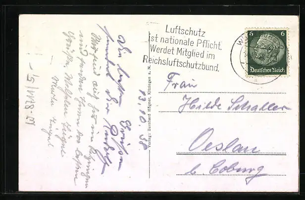 alte Ansichtskarte, gelaufen 1938, guter Zustand