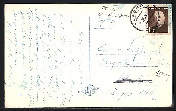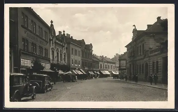 AK Kladno, Strassenpartie mit Geschäften und Autos