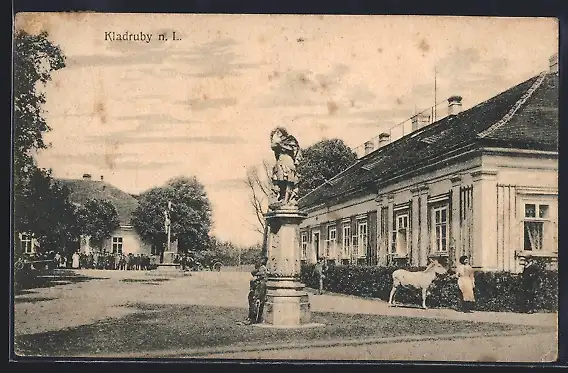 AK Kladruby n. L., Strassenpartie mit Denkmal