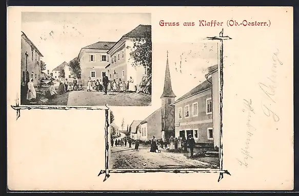 AK Klaffer /Ob.-Oesterr., Strassenpartie und Kirche mit Anwohnern