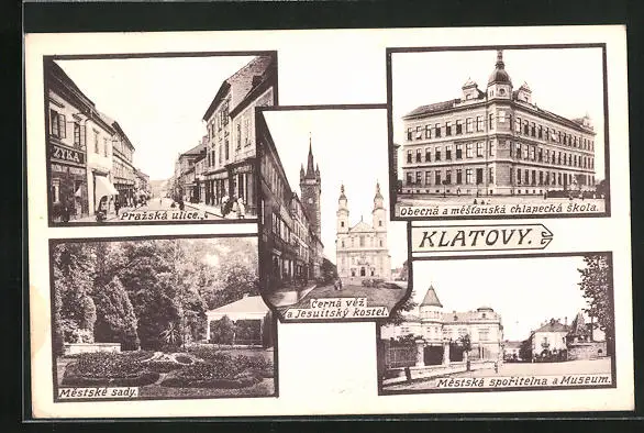 AK Klatovy, Mestské sady, Prazská ulice, Jesuitský kostel