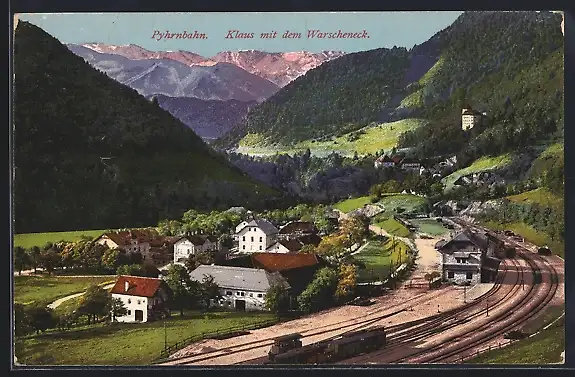 AK Klaus, Bahnhof der Pyhrnbahn mit dem Warscheneck