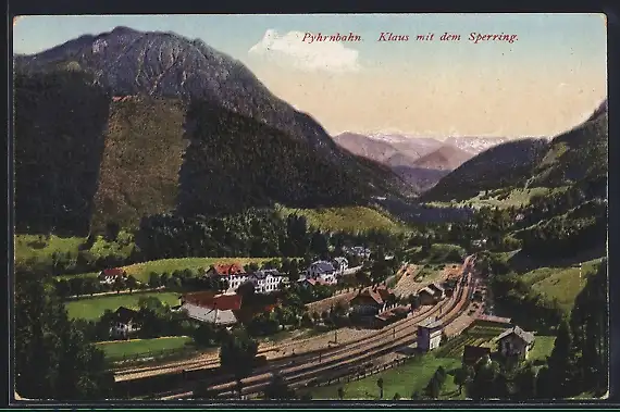 AK Klaus an der Pyhrnbahn, Ortsansicht mit Bahnhof