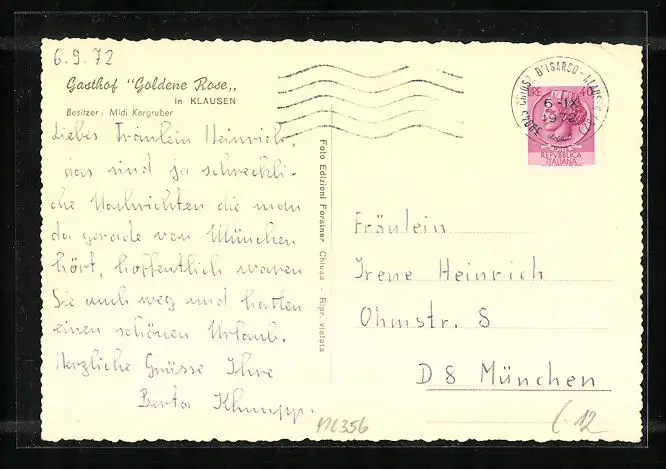 alte Ansichtskarte, gelaufen 1972, Bugspur li. oben, guter Zustand