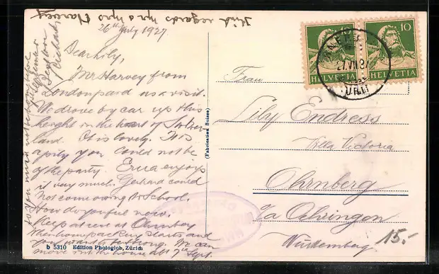 alte Ansichtskarte, gelaufen 1927, Stempelspur, guter Zustand
