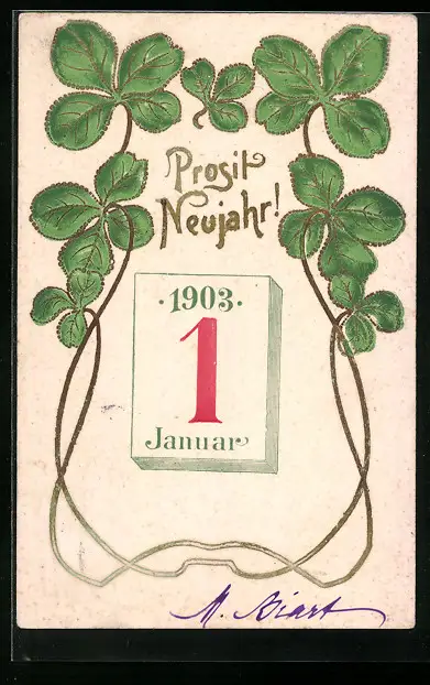 AK Kleeblätter mit Kalenderblatt