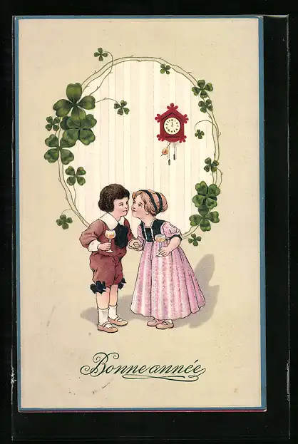 AK Kleeblatt-Rahmen hinter einem Pärchen zu Neujahr