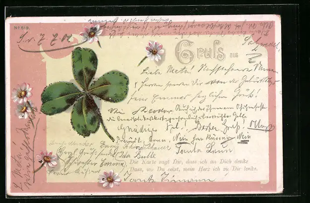 AK Kleeblatt mit Gänseblümchen