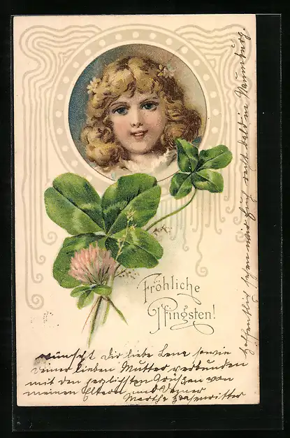 AK Kleeblatt mit Portrait eines Mädchens an Pfingsten