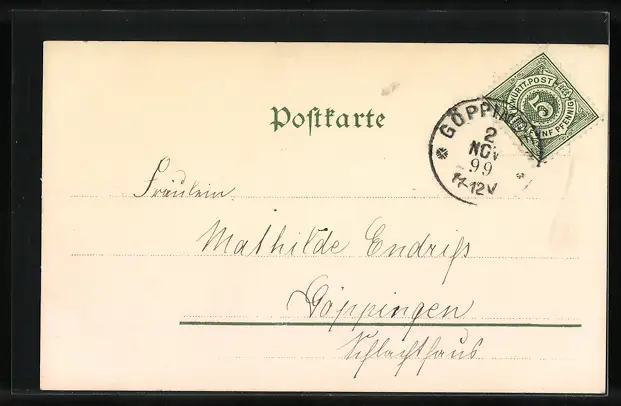 alte Ansichtskarte, gelaufen 1899, guter Zustand