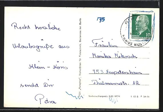 Weitere Ansichtskarten zur Postleitzahl 15746