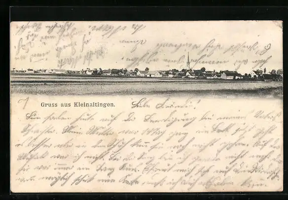 AK Kleinaitingen, Ortsansicht mit Kirche
