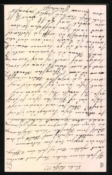 Personenbezogene Daten auf der Rückseite der Karte wurden durch blauen Textmarker unkenntlich gemacht. Die blauen Stellen sind auf die Vorderseite durchgeweicht und wirken sich negativ auf das Postkartenfoto aus