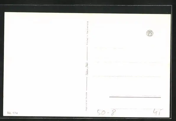 Personenbezogene Daten auf der Rückseite der Karte wurden durch blauen Textmarker unkenntlich gemacht. Die blauen Stellen sind auf die Vorderseite durchgeweicht und wirken sich negativ auf das Postkartenfoto aus