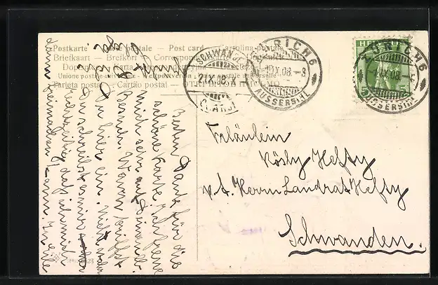alte Ansichtskarte, gelaufen 1908, guter Zustand