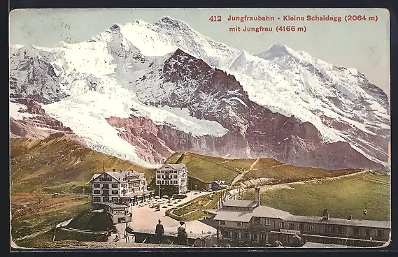 AK Kleine Scheidegg, Hotels, Bahn-Restaurant und Jungfrau