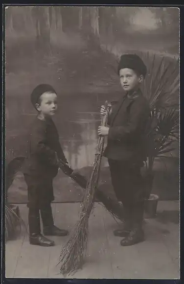 AK Kleine Schornsteinfeger mit Besen