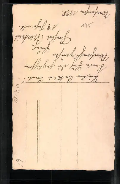 Personenbezogene Daten auf der Rückseite der Karte wurden durch blauen Textmarker unkenntlich gemacht. Die blauen Stellen sind auf die Vorderseite durchgeweicht und wirken sich negativ auf das Postkartenfoto aus