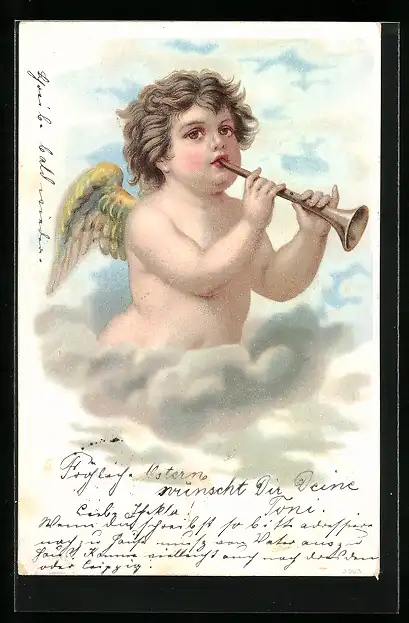 AK Kleiner Engel musiziert auf einer Wolke