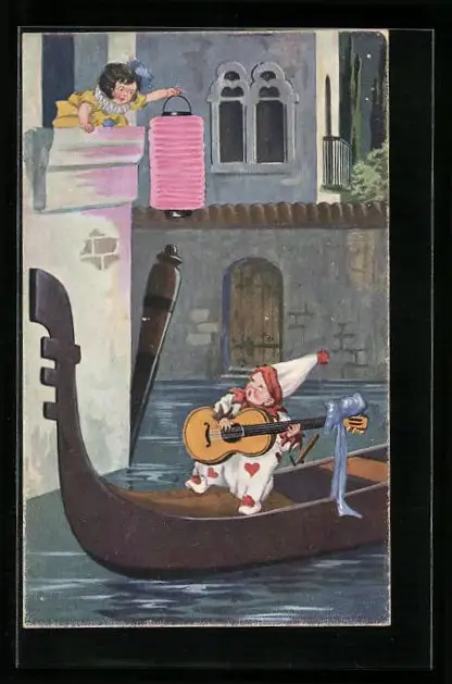 AK Kleiner Harlekin gibt ein Ständchen in einer Gondel