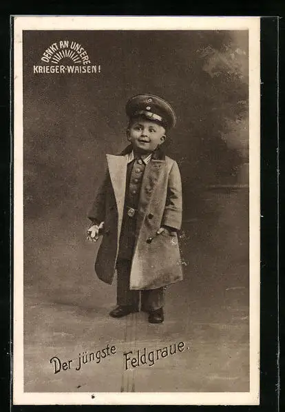 AK Kleiner Junge als der jüngste Feldgraue, Kinder Kriegspropaganda