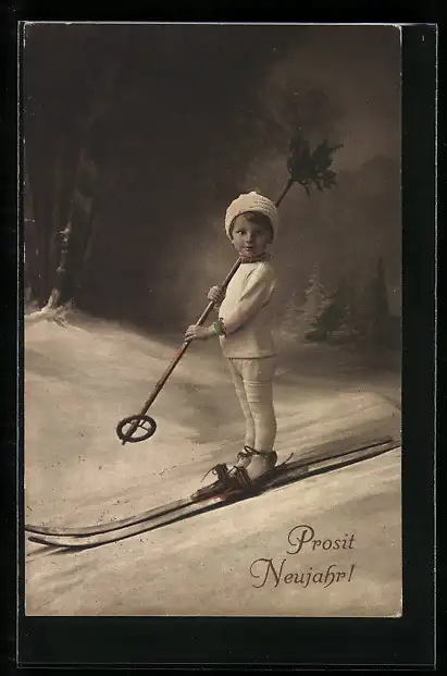 AK Kleiner Junge auf Skiern, Neujahrsgruss