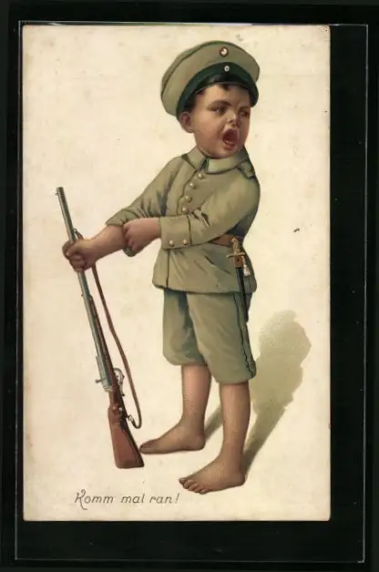 AK Kleiner Junge in Uniform mit Gewehr, Kinder Kriegspropaganda