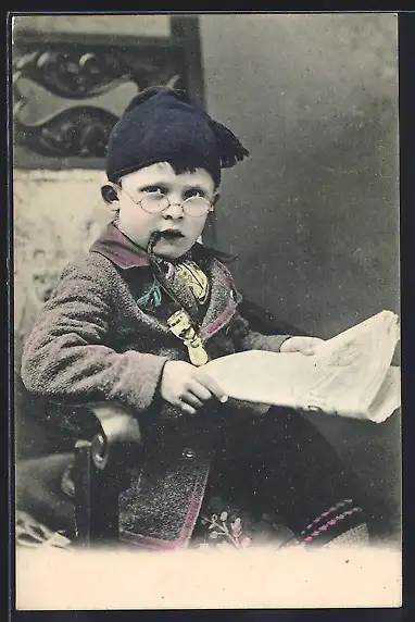 AK Kleiner Junge mit Pfeife liest die Zeitung