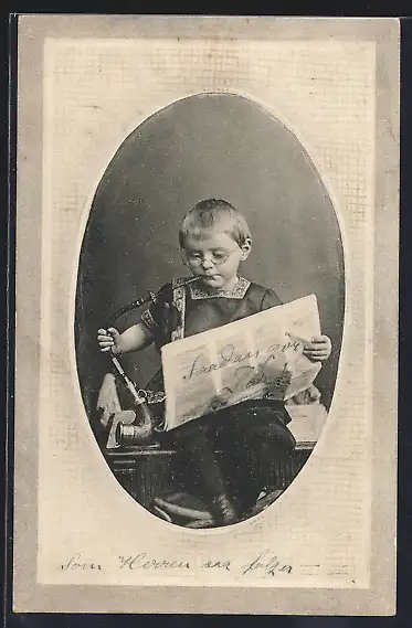 AK Kleiner Junge mit Pfeife und Zeitung