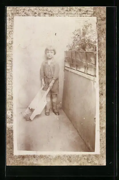 AK Kleiner Junge mit Schubkarre