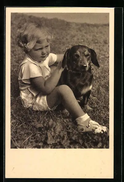 AK Kleiner Junge mit beleibtem Dackel auf einer Wiese