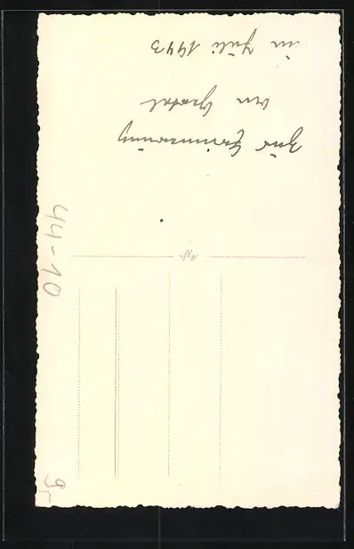 Personenbezogene Daten auf der Rückseite der Karte wurden durch blauen Textmarker unkenntlich gemacht. Die blauen Stellen sind auf die Vorderseite durchgeweicht und wirken sich negativ auf das Postkartenfoto aus