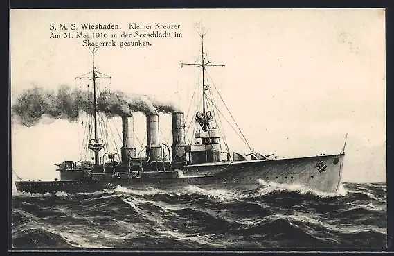AK Kleiner Kreuzer SMS Wiesbaden auf See