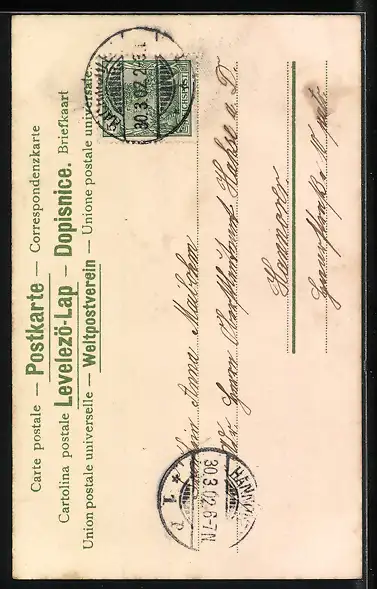 alte Ansichtskarte, gelaufen 1902, guter Zustand