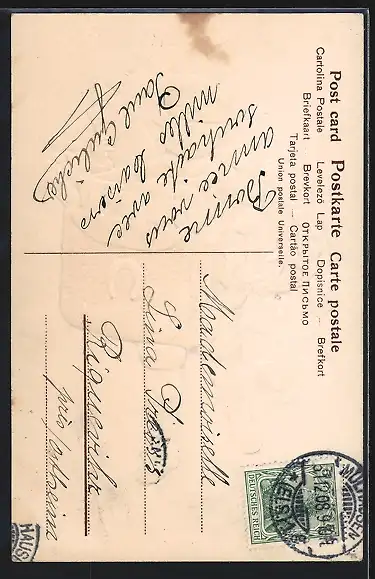 alte Ansichtskarte, gelaufen 1908, Stempelspur, guter Zustand