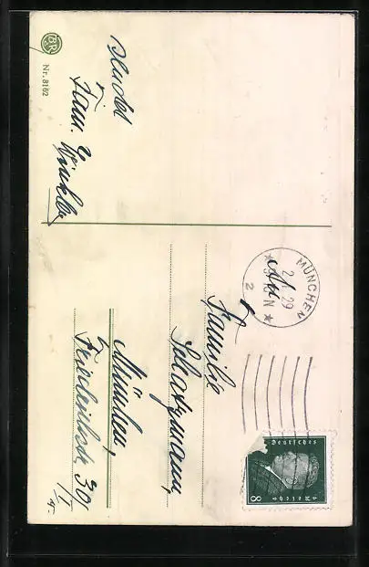 alte Ansichtskarte, gelaufen 1929, Bugspuren oben li. u. re. unten, guter Zustand