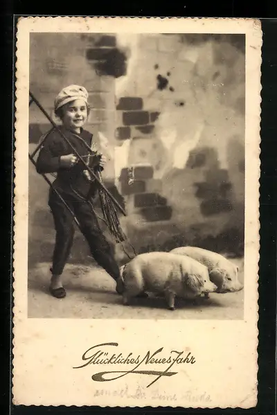 AK Kleiner Schornsteinfeger und Glücksschweine