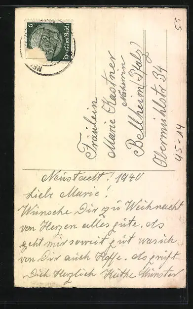 alte Ansichtskarte, gelaufen, Bugspuren oben re. u. unten Mitte, guter Zustand