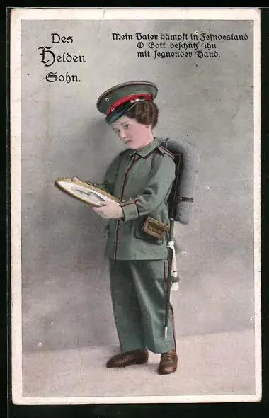 AK Kleiner Soldat bittet um Gottes Segen für seinen kämpfenden Vater