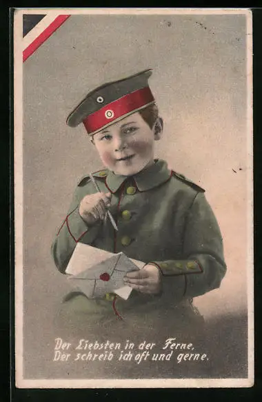 AK Kleiner Soldat schreibt der Liebsten in der Ferne