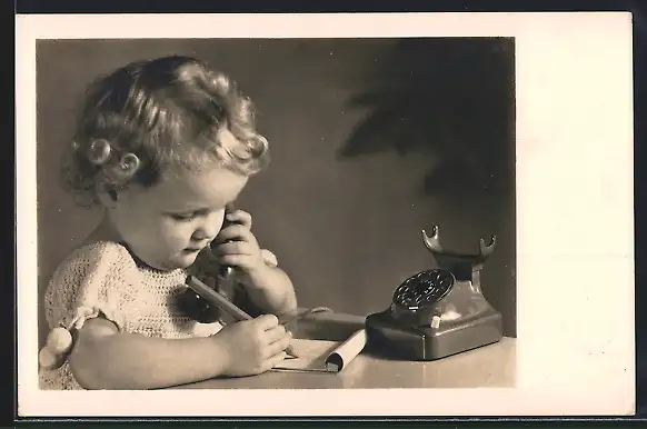 AK Kleines Kind am Telefon schreibt Notizen auf